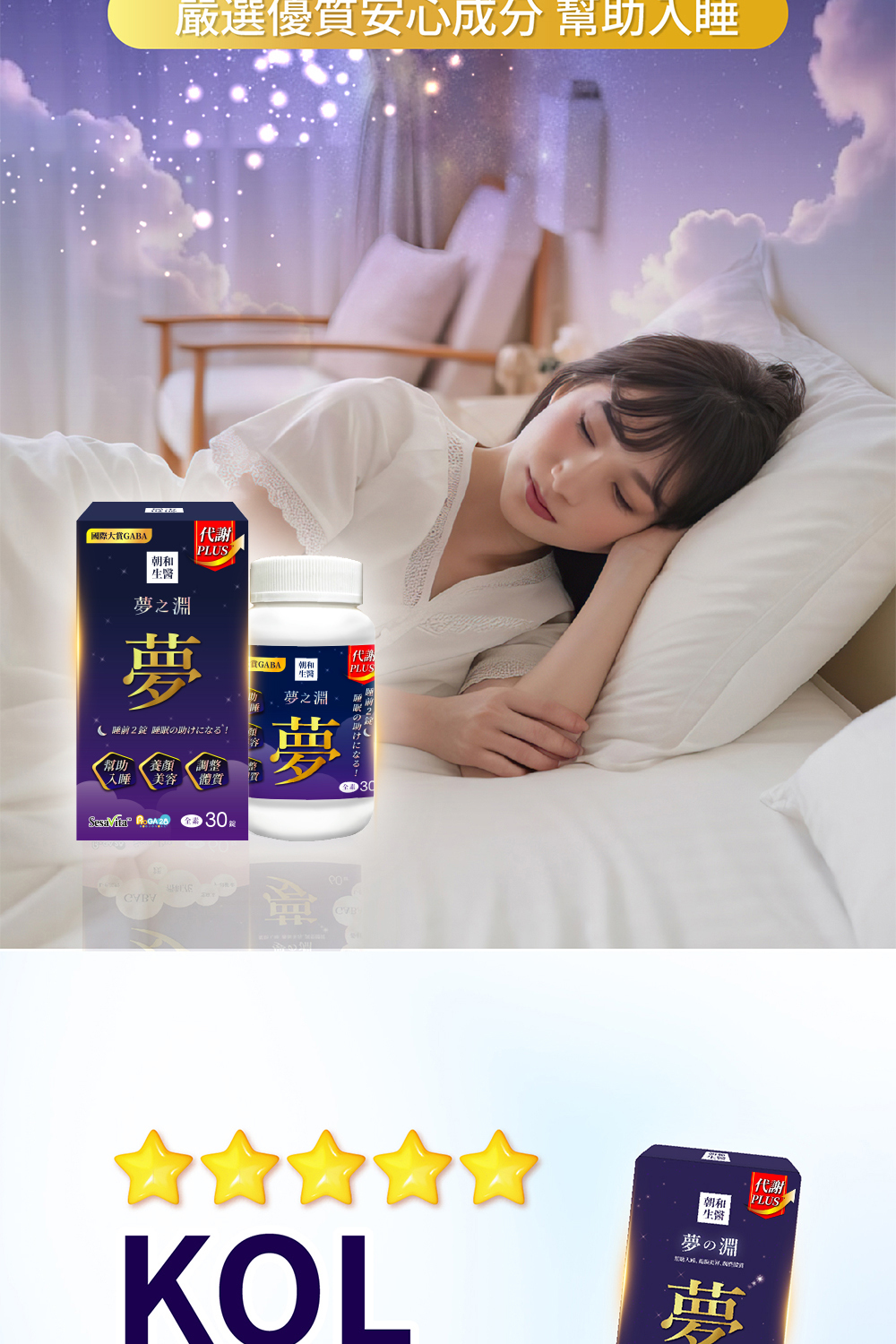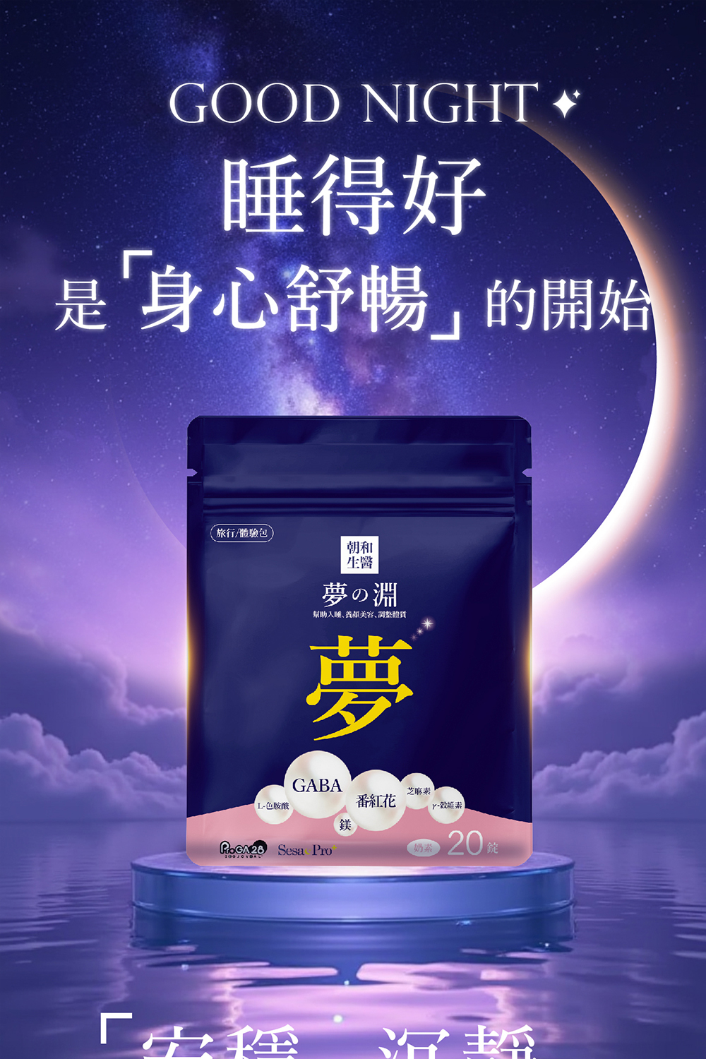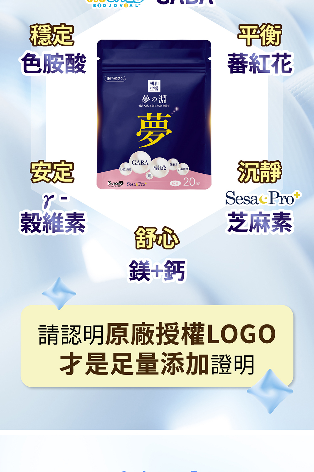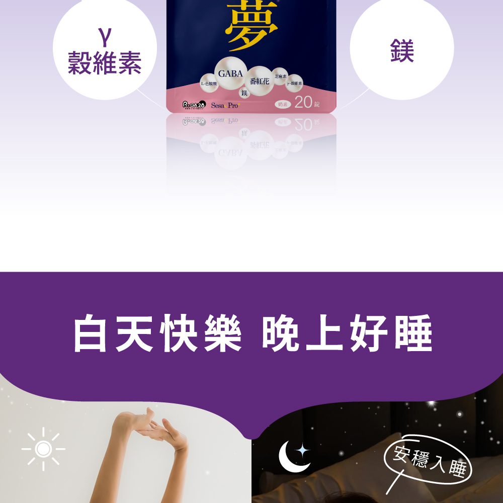 5大關鍵成份,GABA、色胺酸、芝麻素、穀維素、鎂。