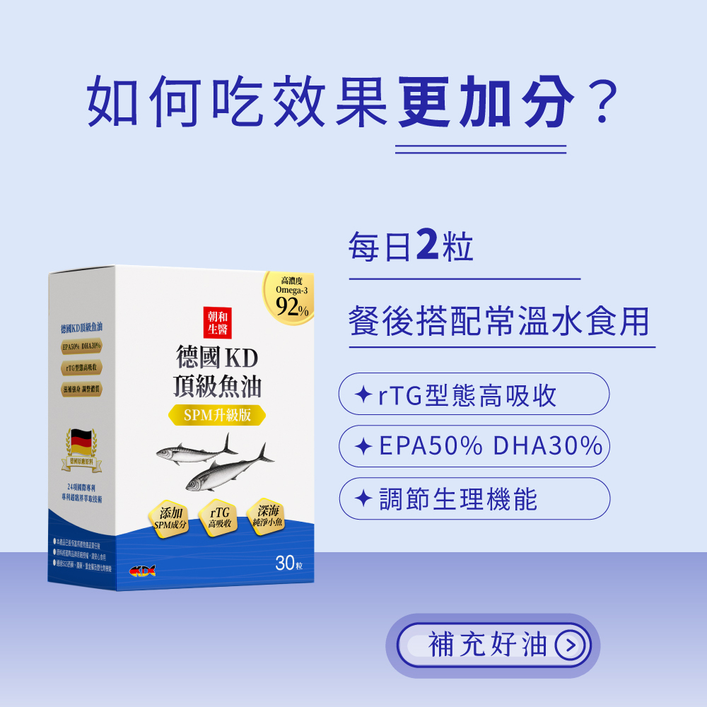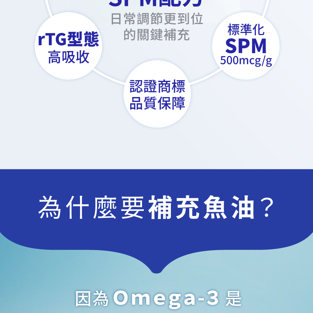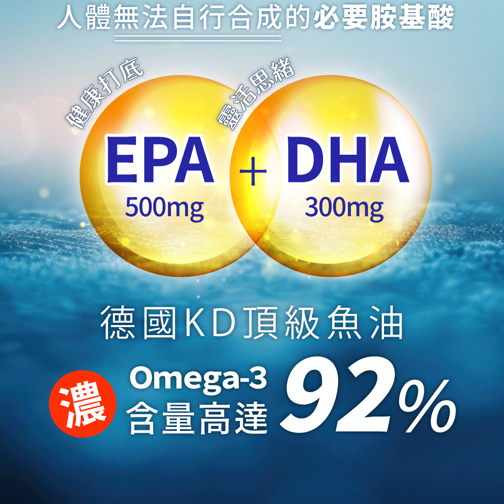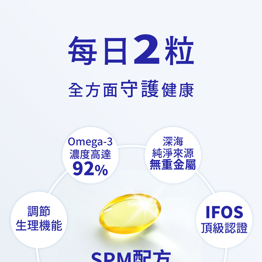 超高濃度|嚴選Omega-3脂肪酸92%以上的高濃度魚油。