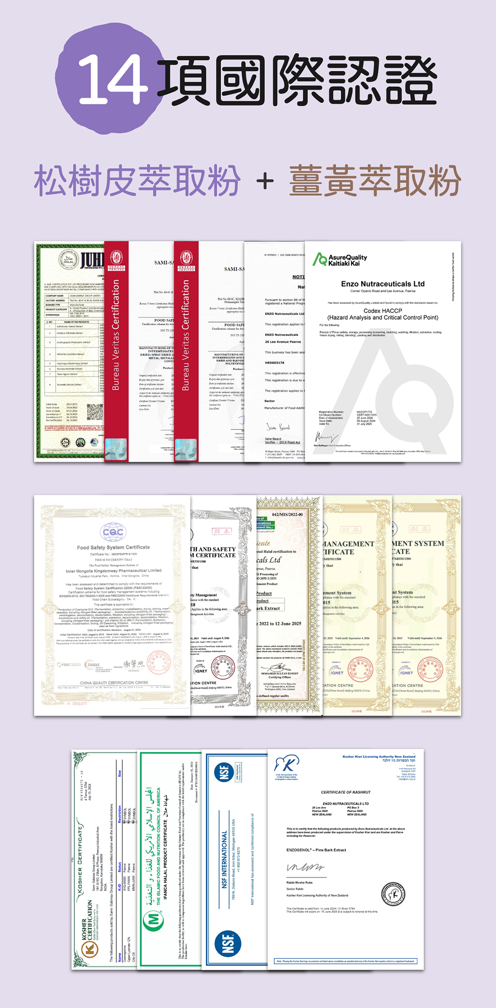 2項紐西蘭專利、14項國際認證、SGS檢驗合格